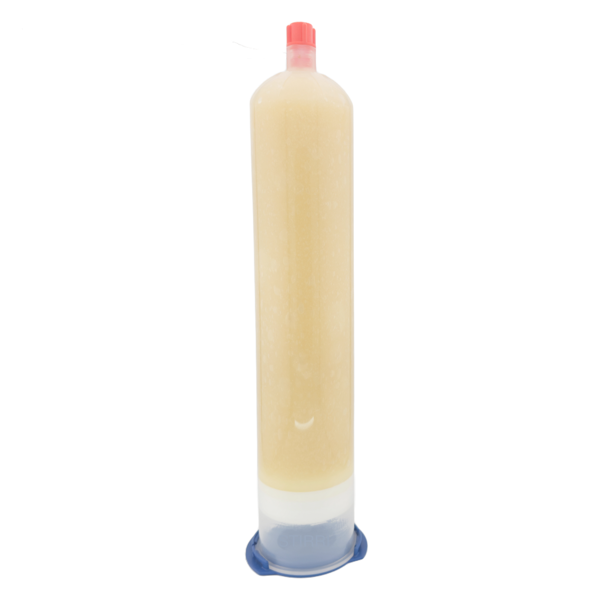 Air syringes intended for pneumatic dispensing machines use a piston stopper instead of a plunger. Do not remove the piston as it delivers the best seal preventing contact with air!